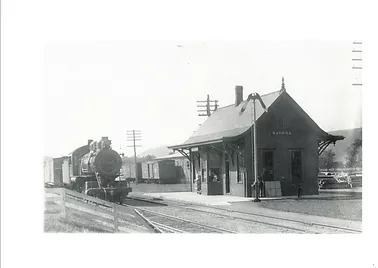 DL&W train at the depot, circa 1 912, from a “Mrs. J. H. Freeman” postcard